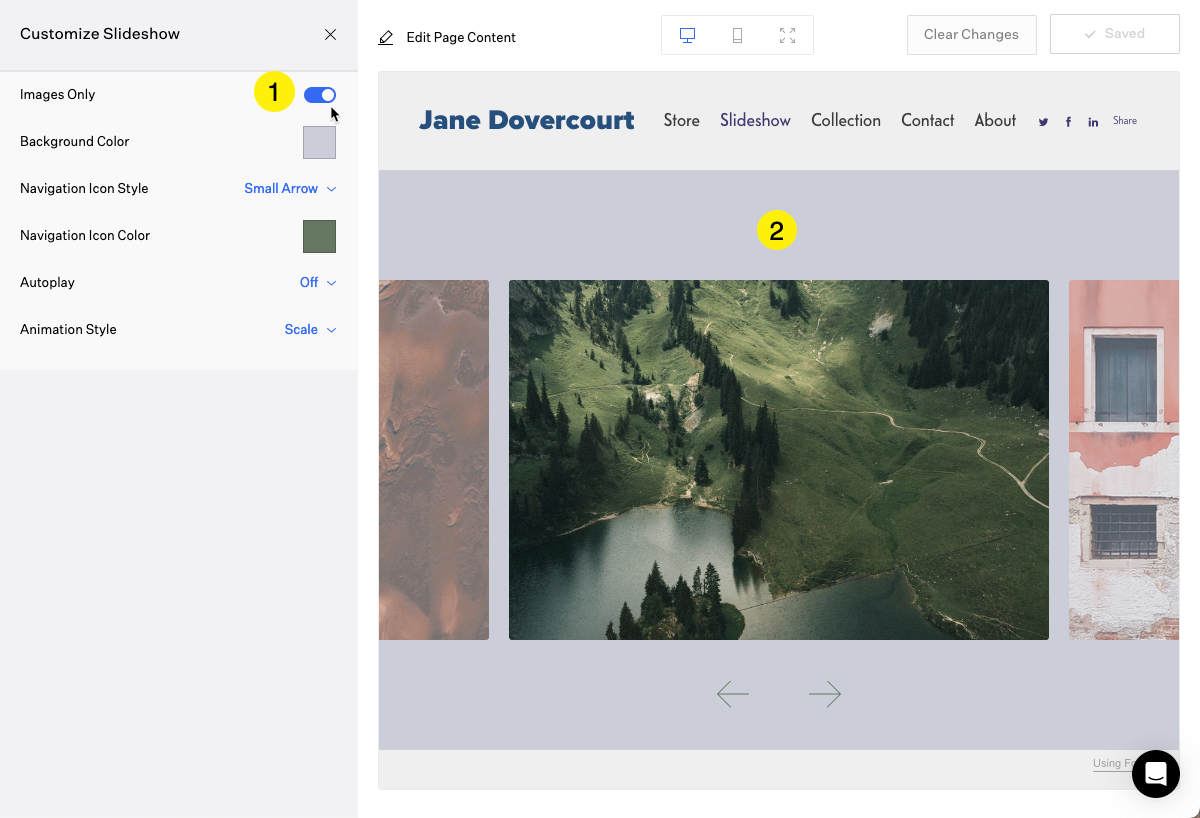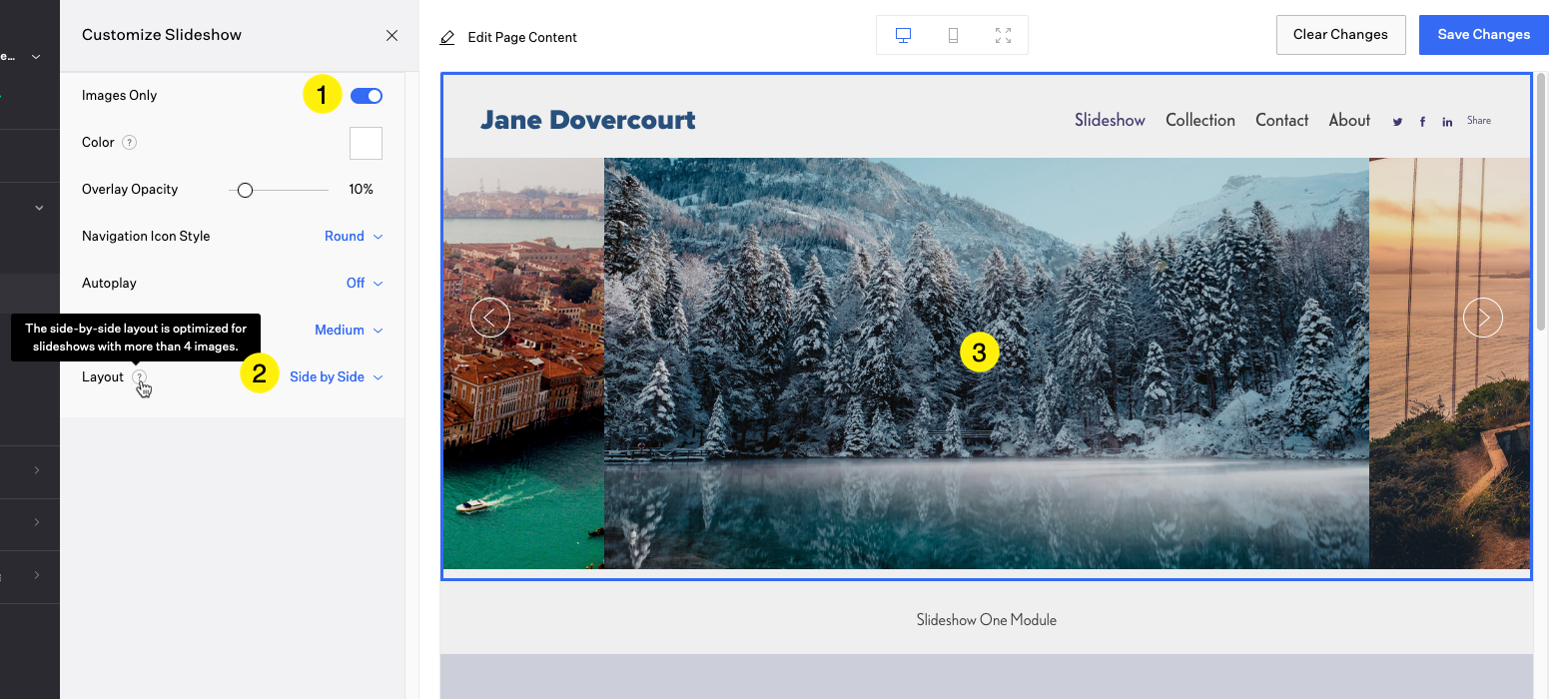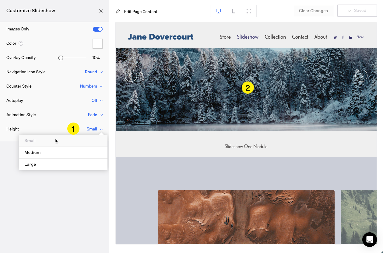 Each Slideshow Module has slightly different design options that are separate from any other Design settings you may have already set for your site.