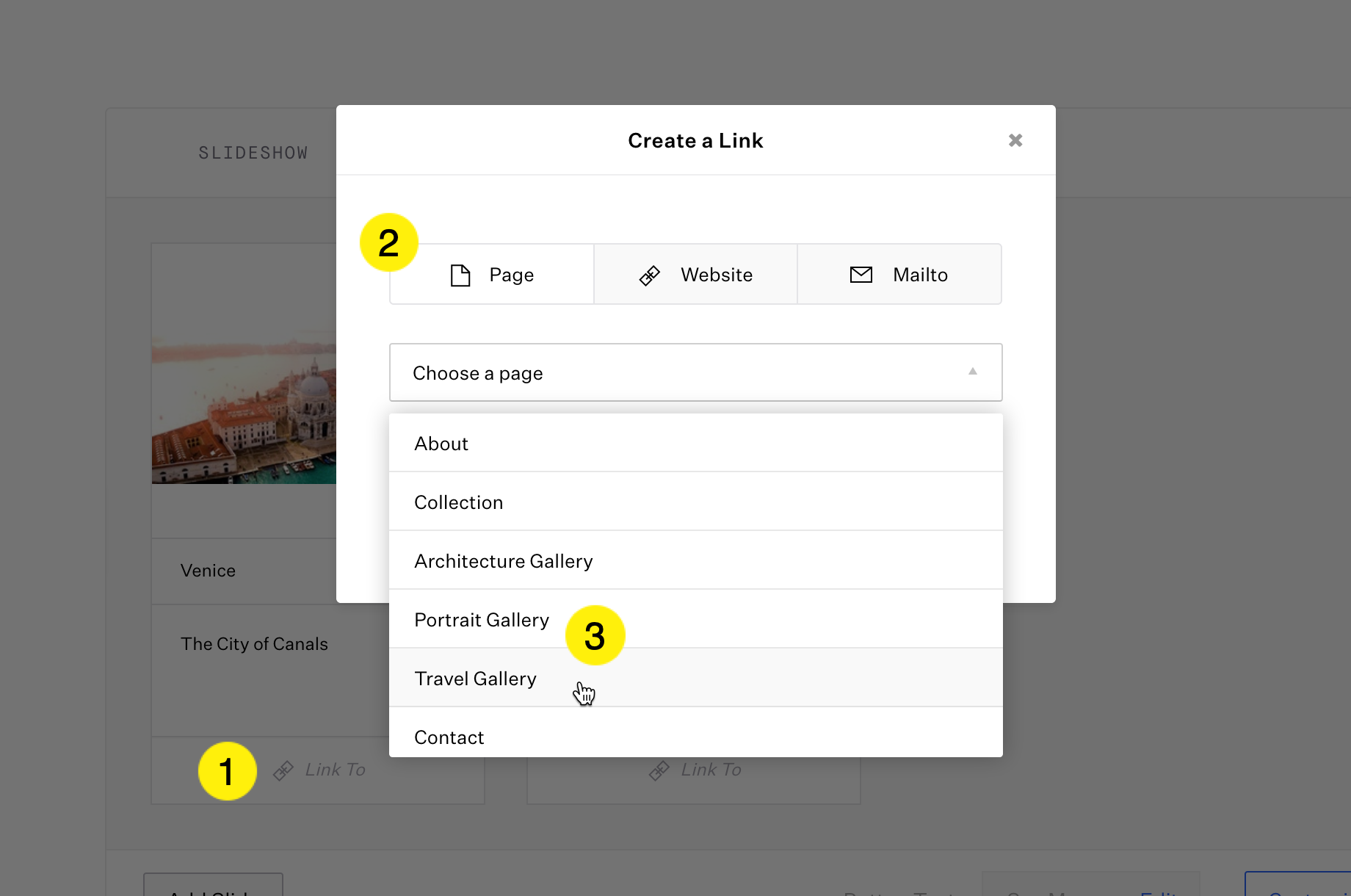 Slideshows are accessed through the Custom Page 'Add Section' module.