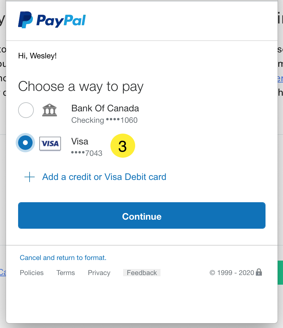 3. Select the account you would like to use for your PayPal payments: