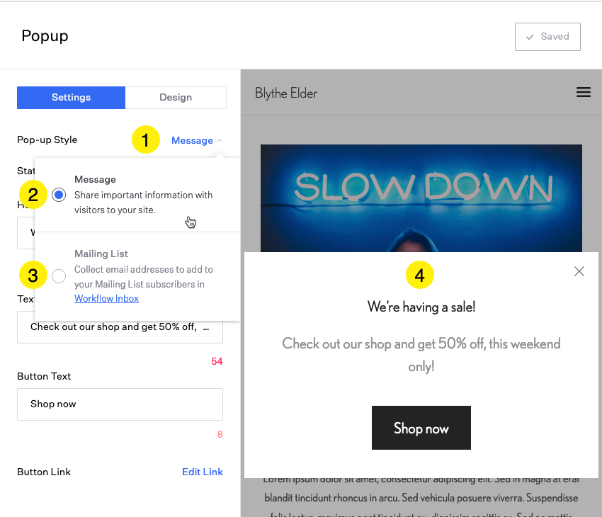 Popup Messages or Mailing List Subscriptions