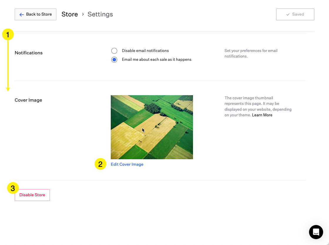 Edit Cover Image: The first Product you add to your Store will have its cover image shown as the default for your overall Store, but you can change this here and replace it with another image