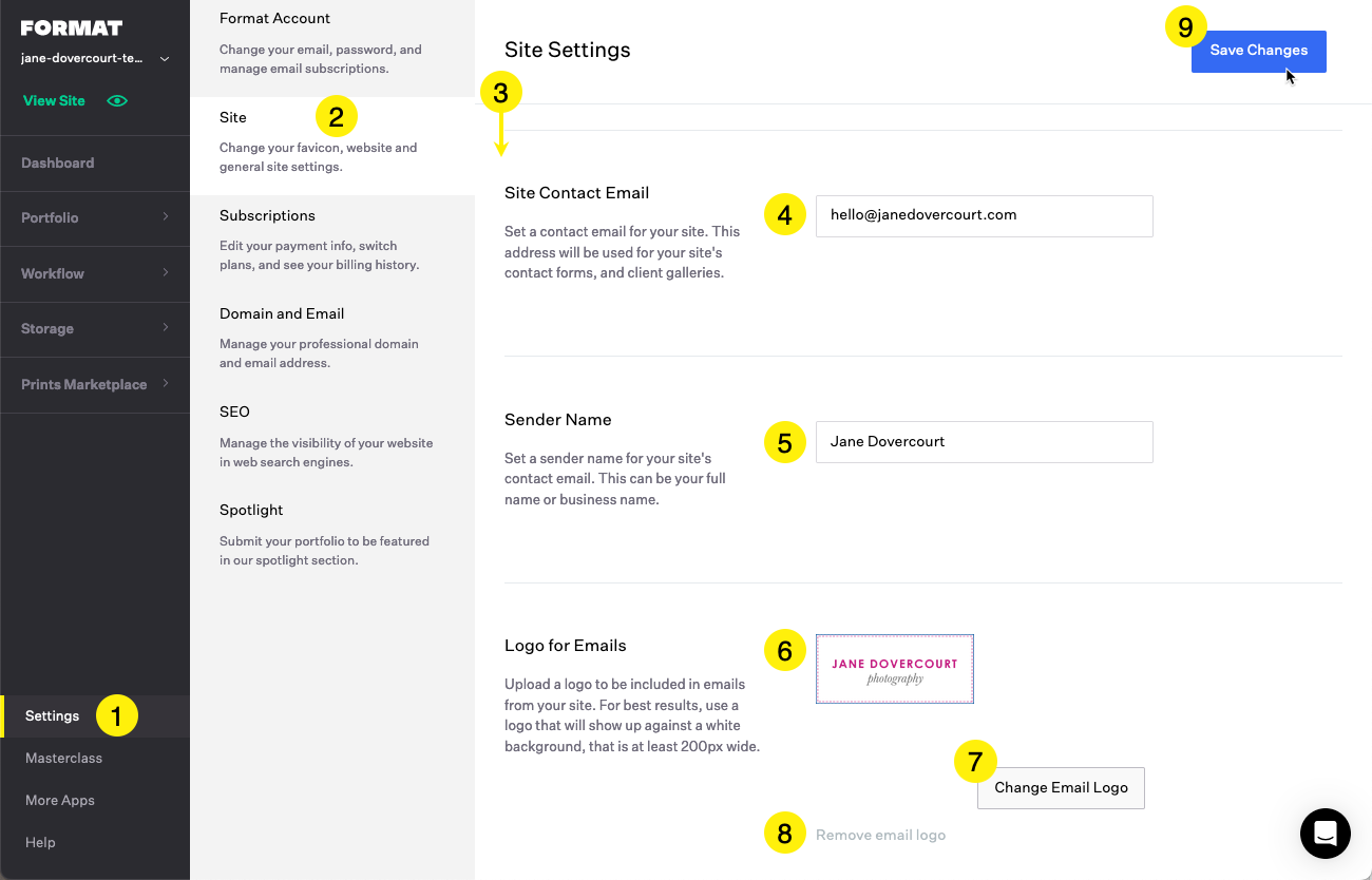 Site Contact Email: This can be different from your Format account email address