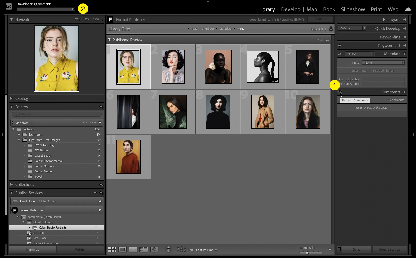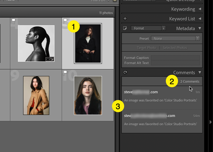 When an individual image is highlighted under the 'Comments' area it will display the number of comments