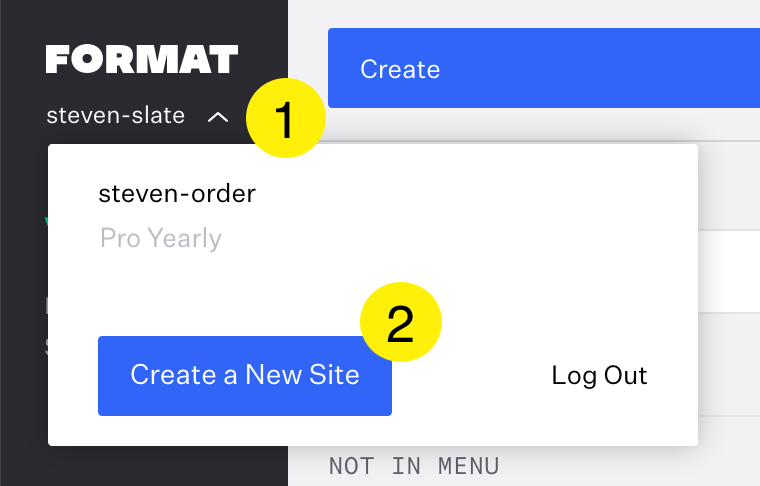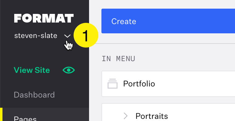 Click the dropdown icon next to your site name, just below the Format logo in the top-left corner