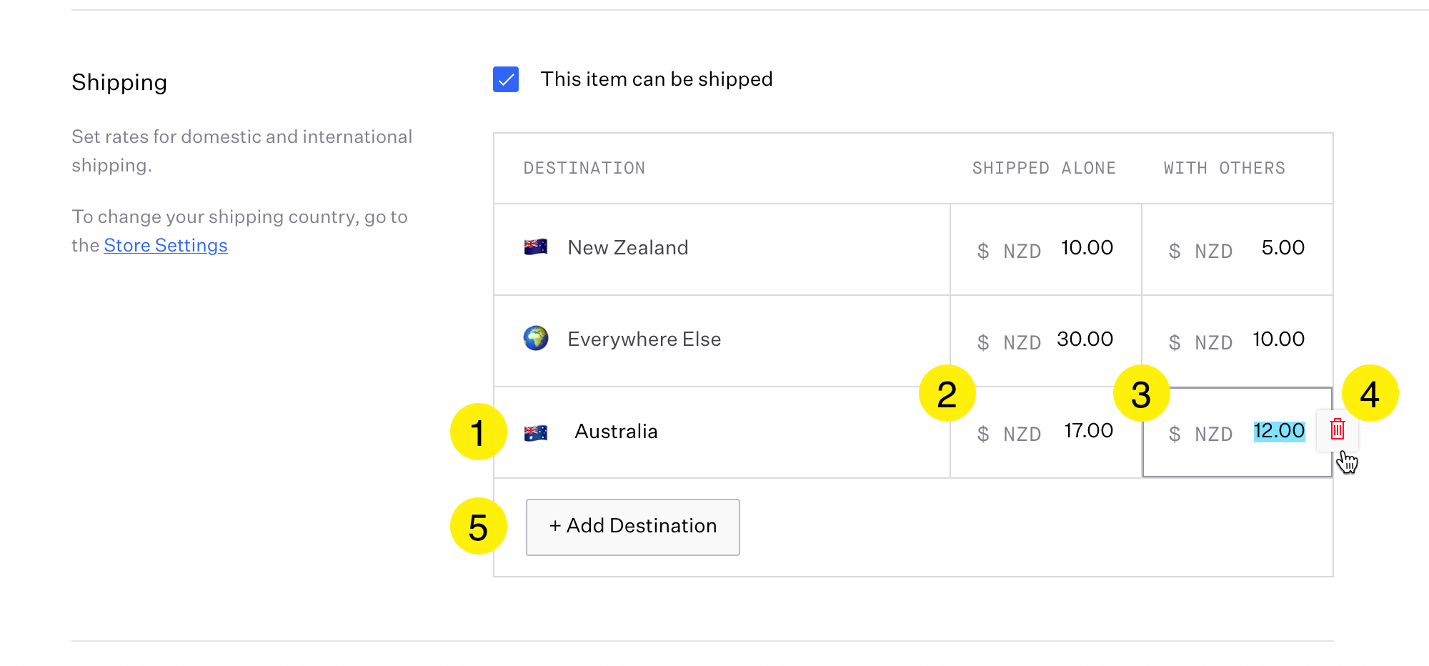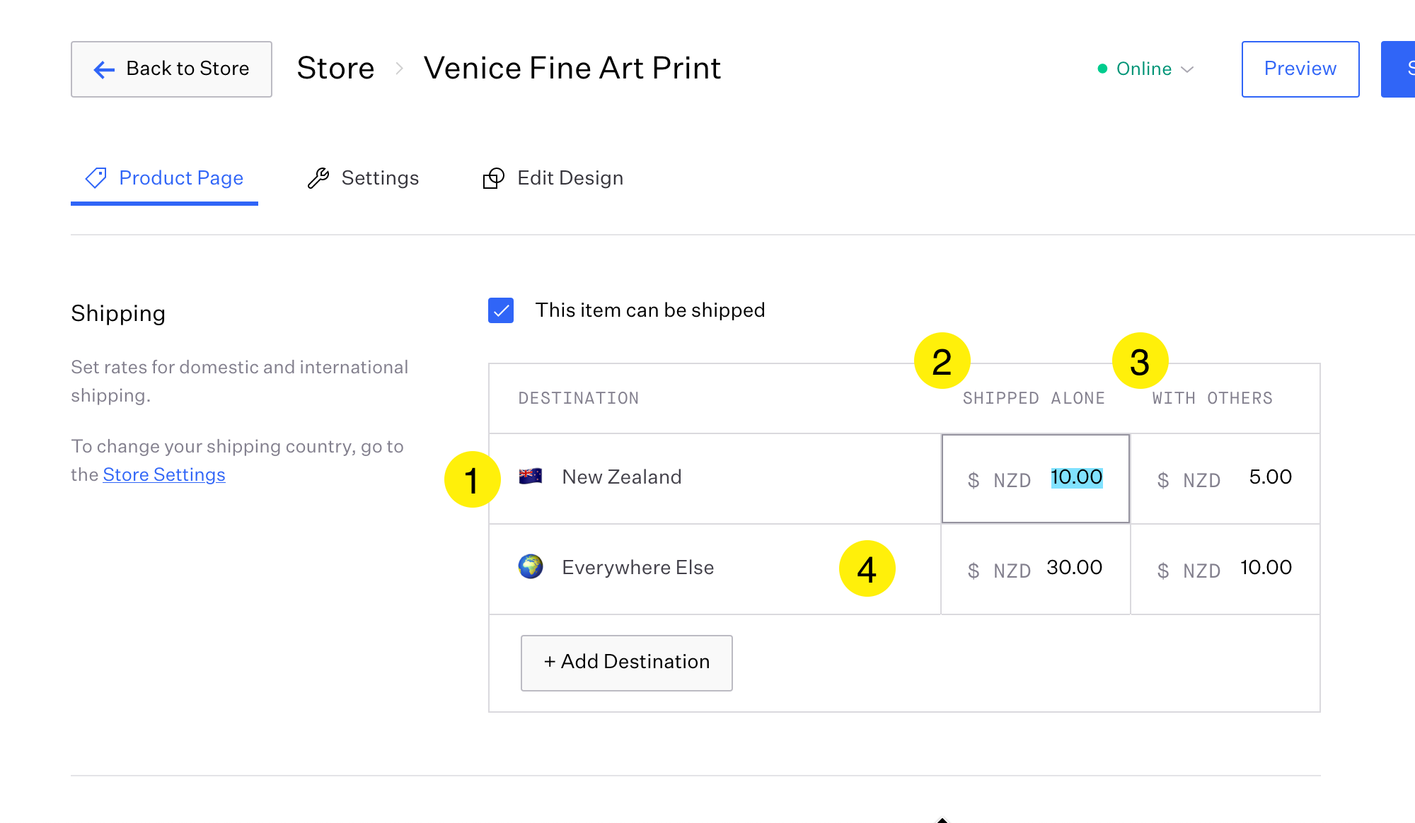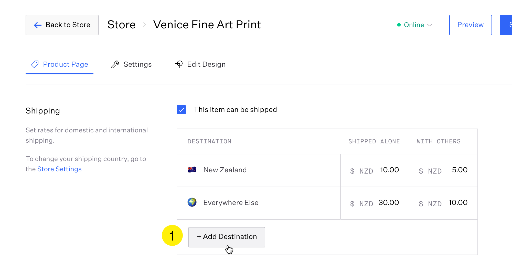 Choose how much to charge when a product is shipped on its own or when combined with other products. You can set different shipping rates for every product in your Store.