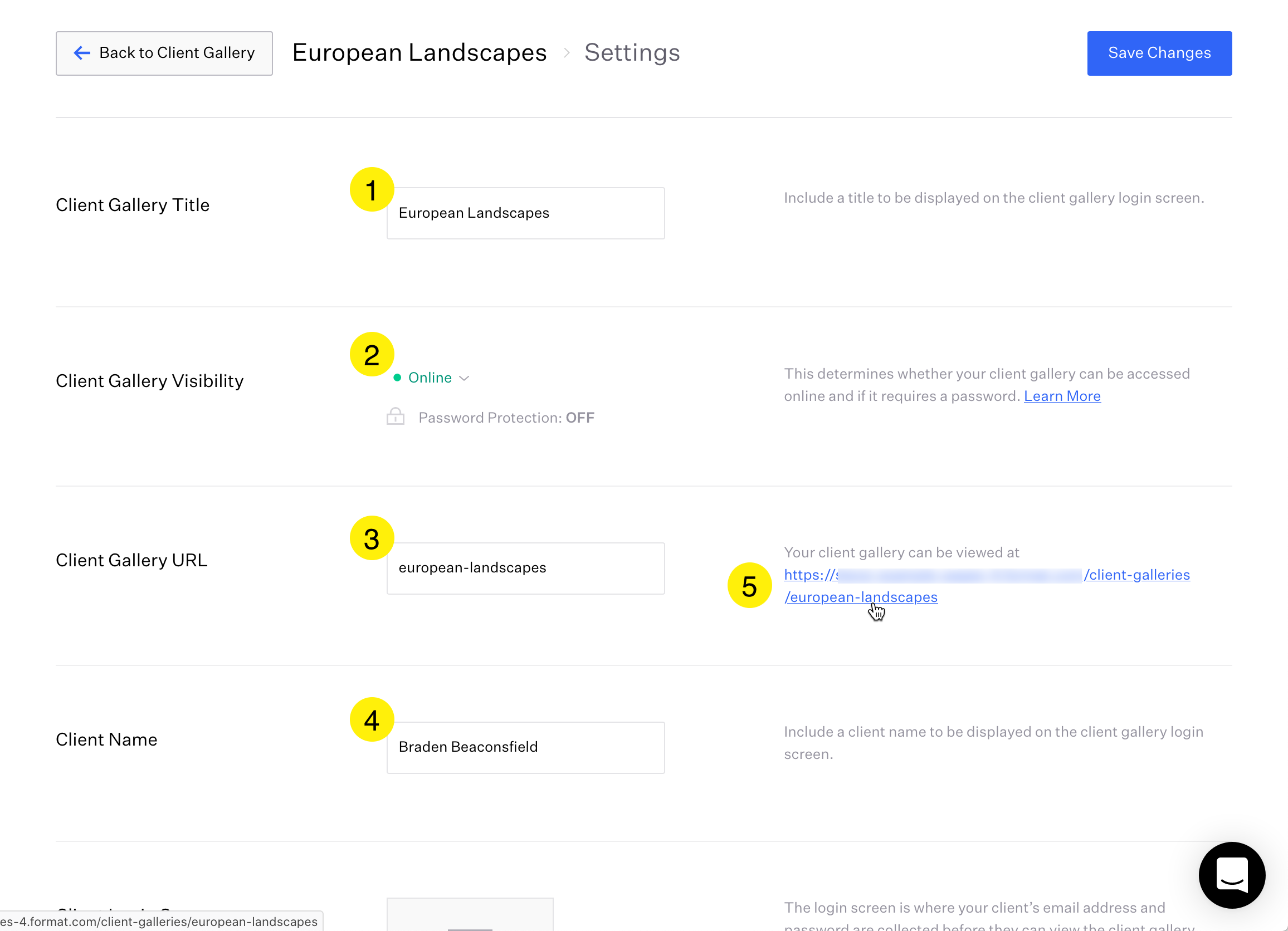 Client Gallery URL: should match title, all lowercase