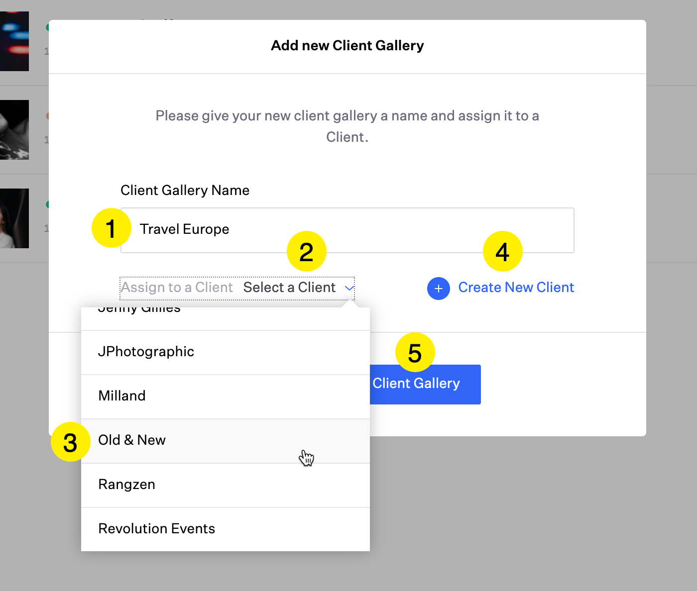 Click 'New Client Gallery'