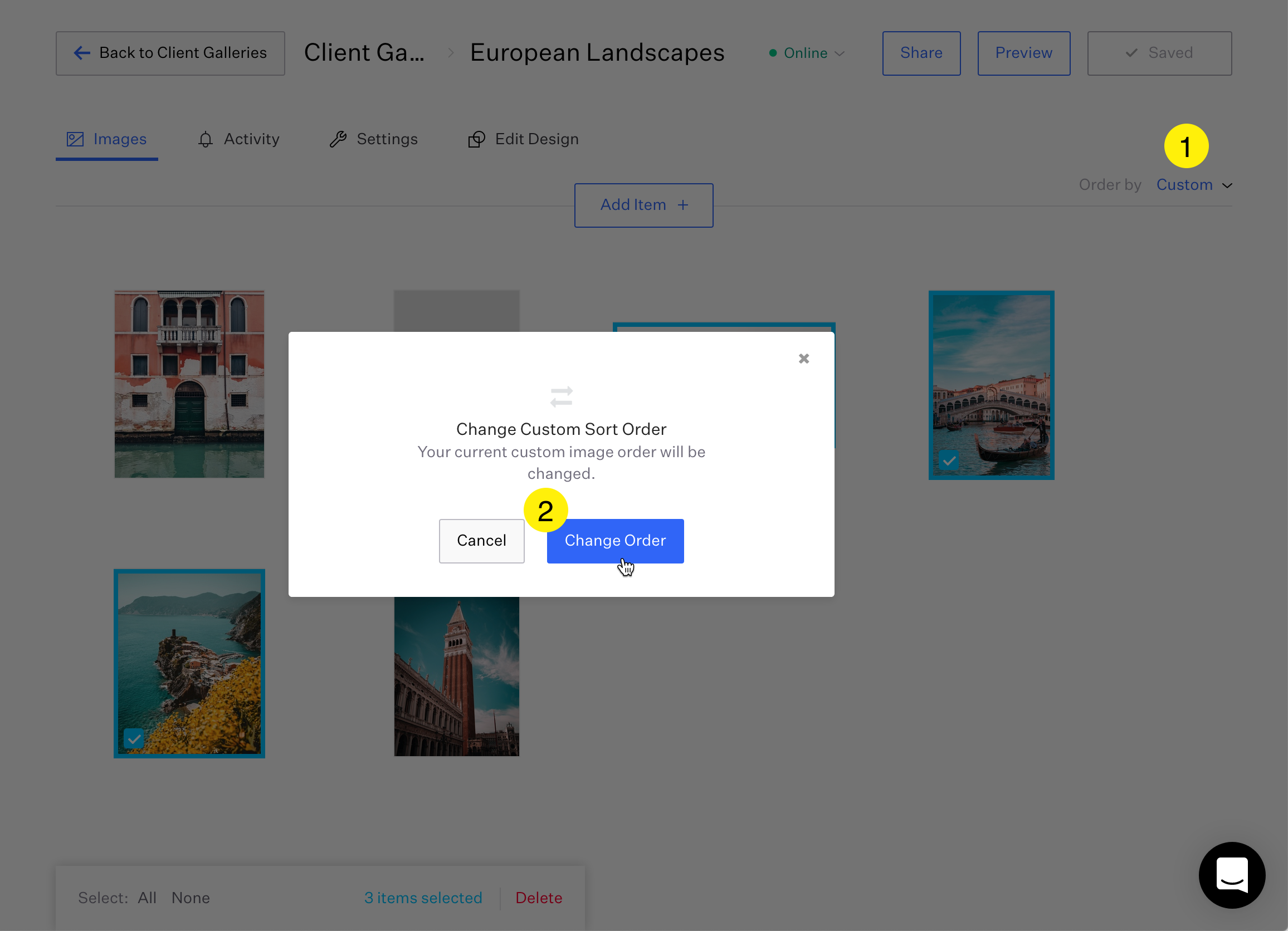 Confirm 'Change Order'. This will also affect the order your client views the images