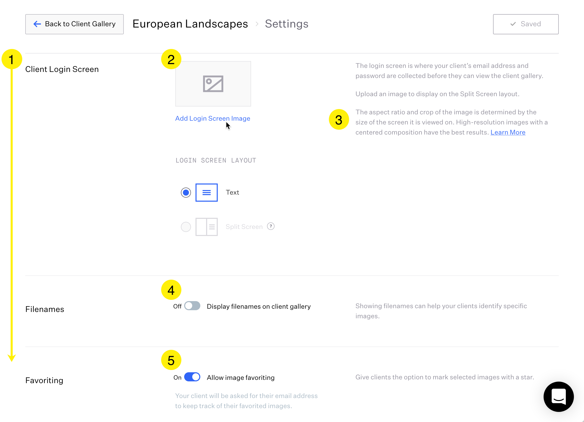 Client Gallery specific Settings