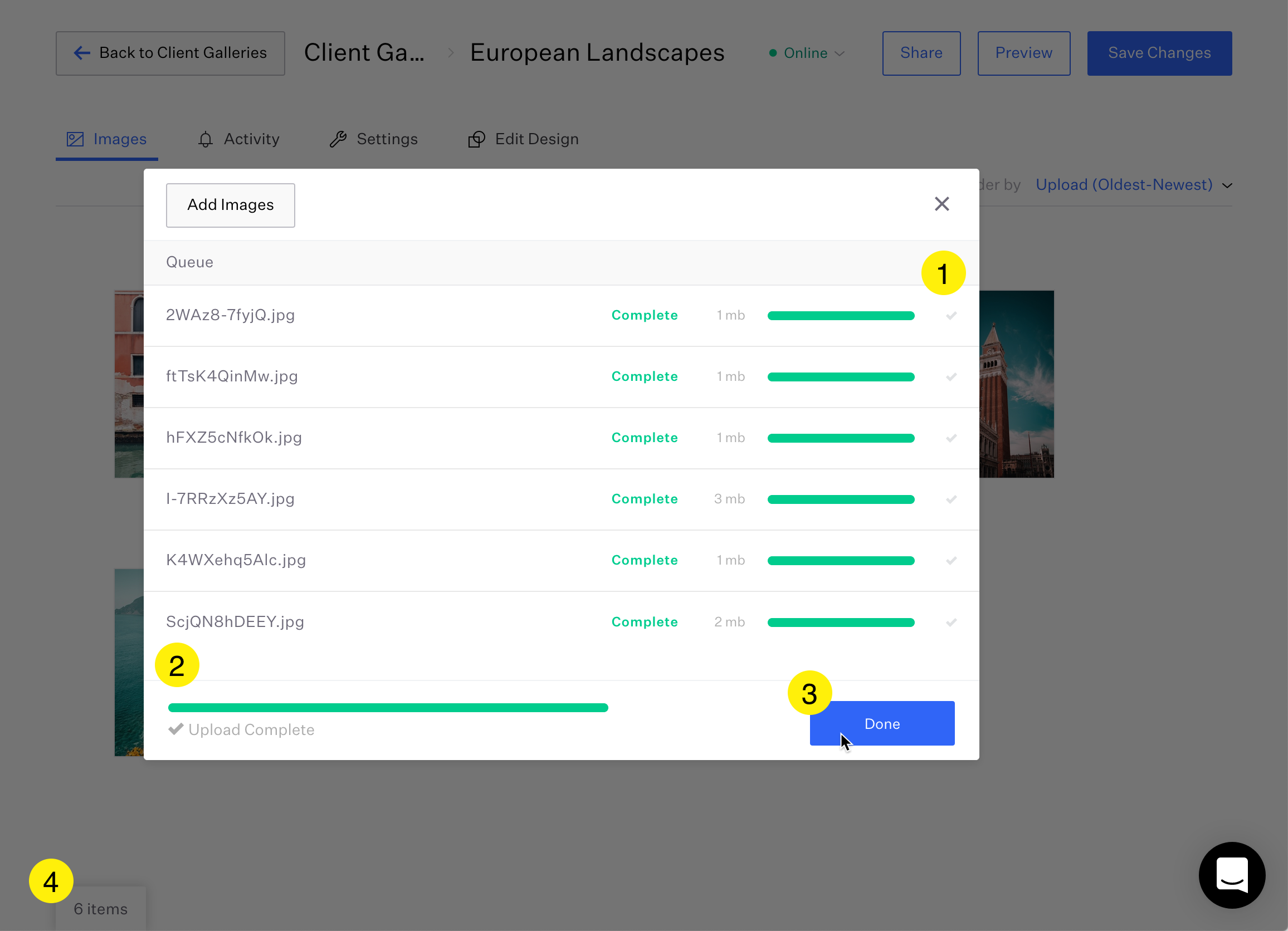 Upload Images: select images from your computer
