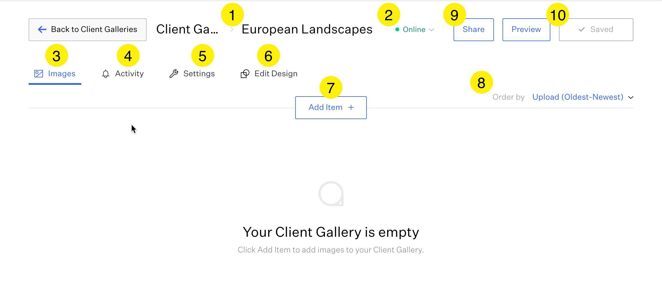 Client Gallery panel overview