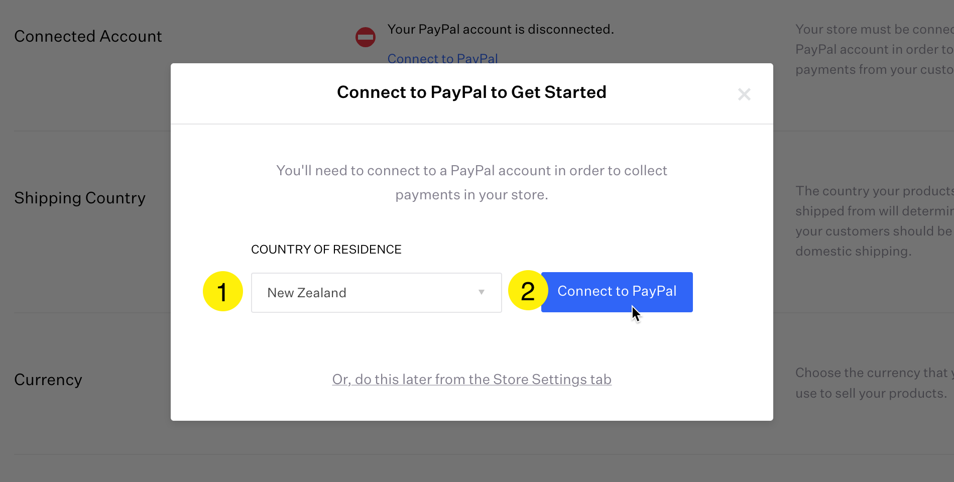 If you see a message 'Your PayPal account is disconnected' click the 'Connect to PayPal' link