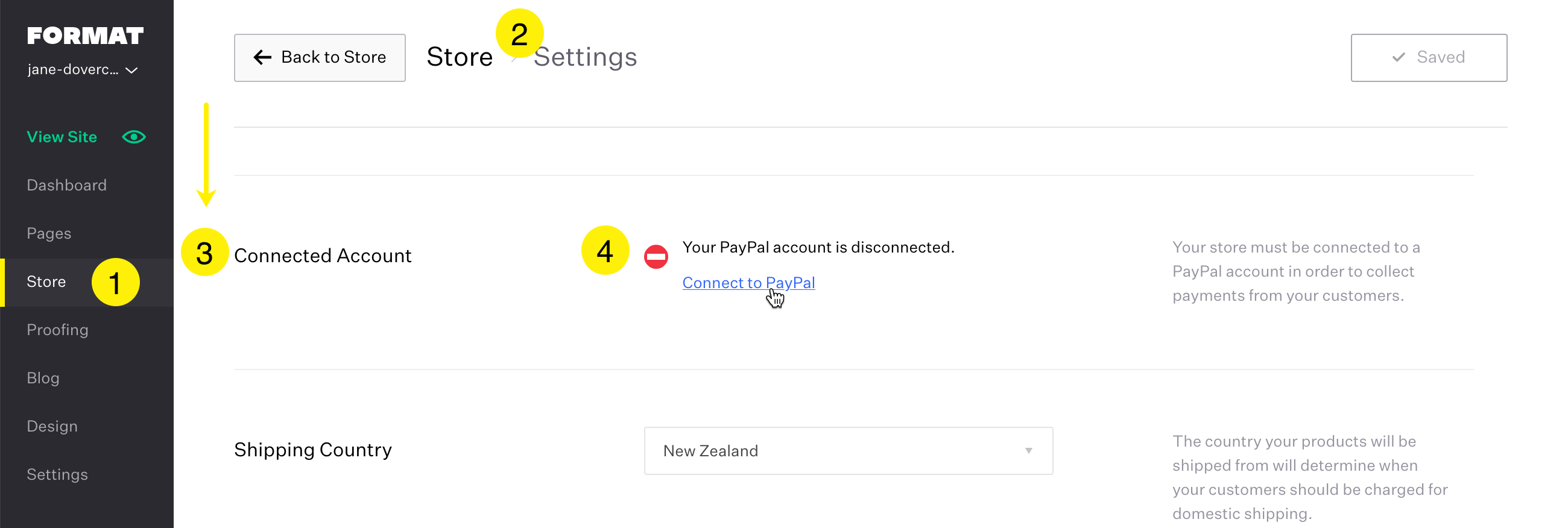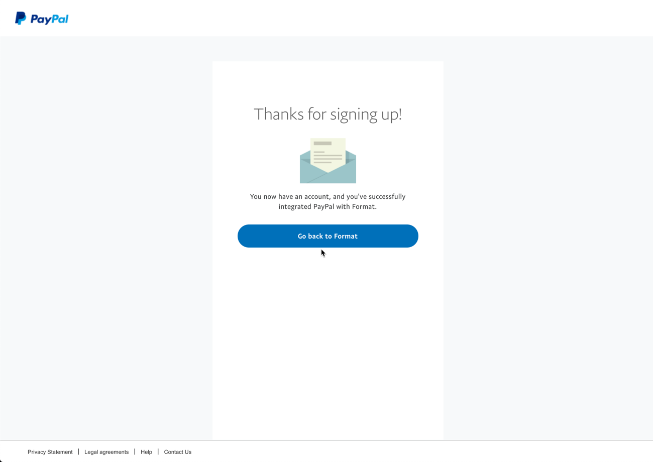 Your Format Store must be connected to a PayPal Business Account in order to collect payments from your customers.