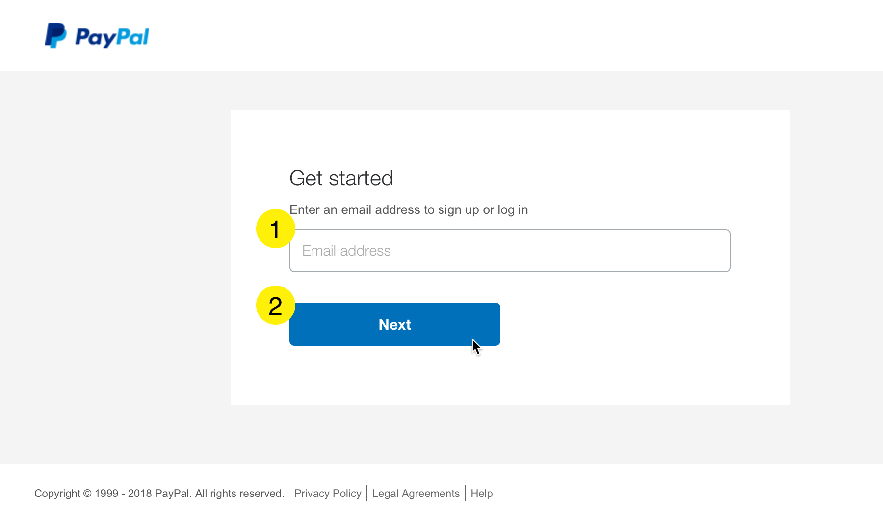 Enter your email address if you have an existing PayPal account or need to sign up for a new account