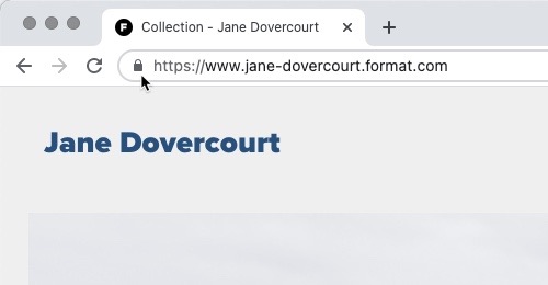 SSL certificates also improve your ranking in Google search, making it easier than ever for people to discover your creative business. You don’t need to do anything to claim your SSL certificate for your Format portfolio site.