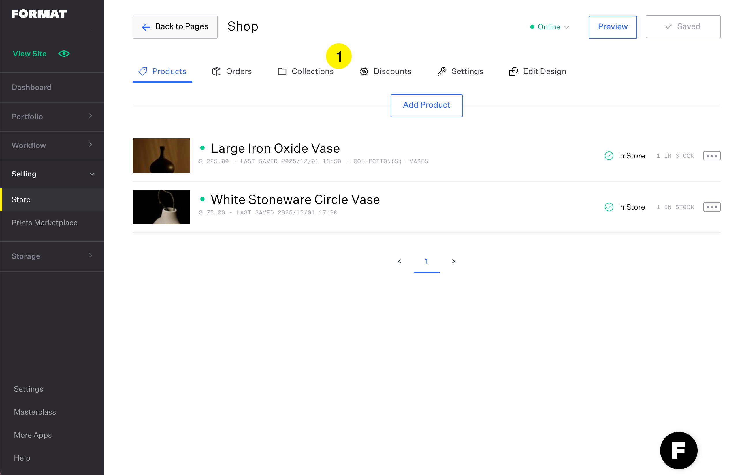 - Products: Navigate to the Products tab. This is the default view when navigating to your Store