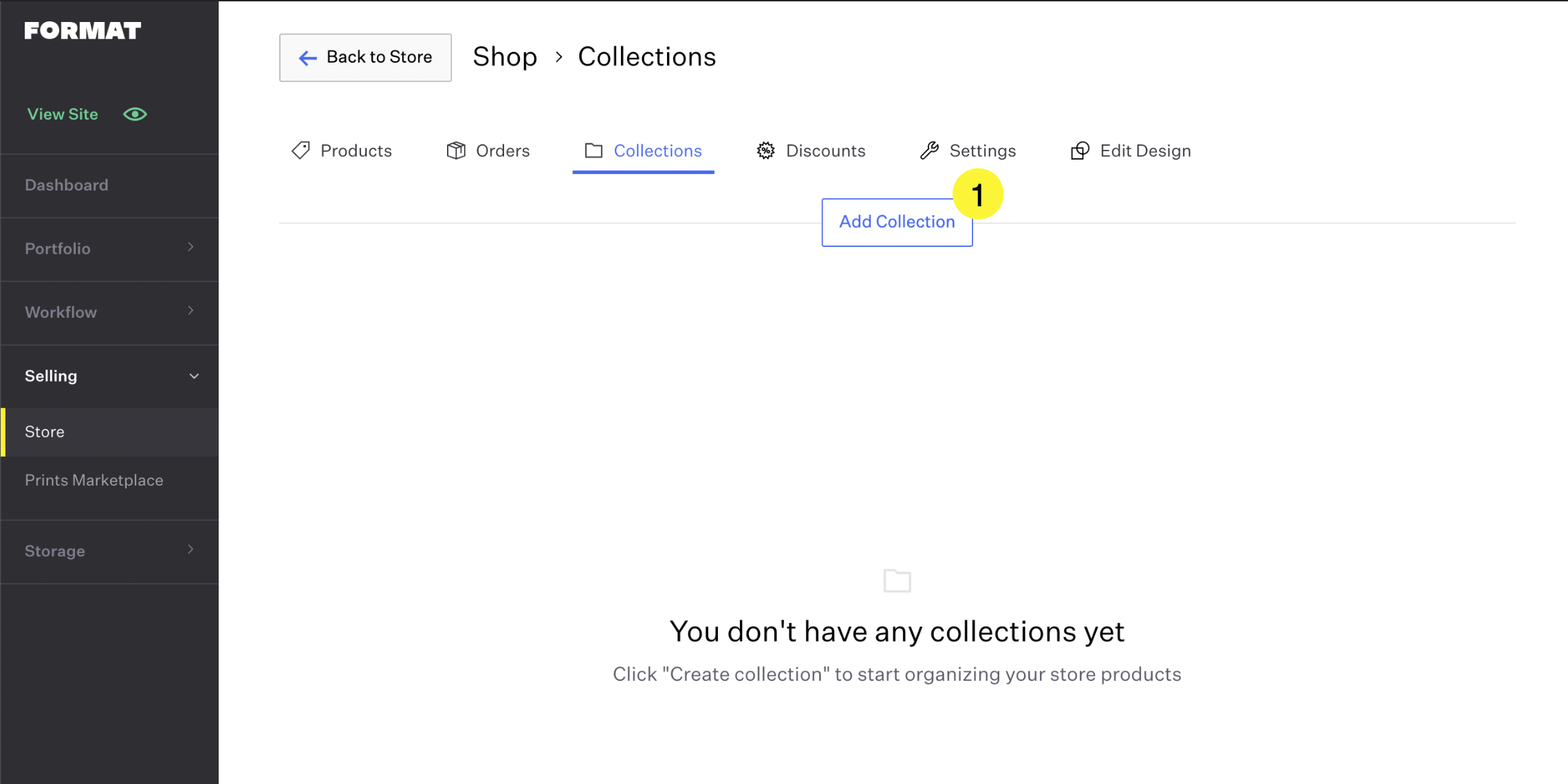 Once you have navigated to the Collections tab within your Store, you will have the option to create new Collections, or manage existing Collections. First, we'll walk through creating a new Collection: