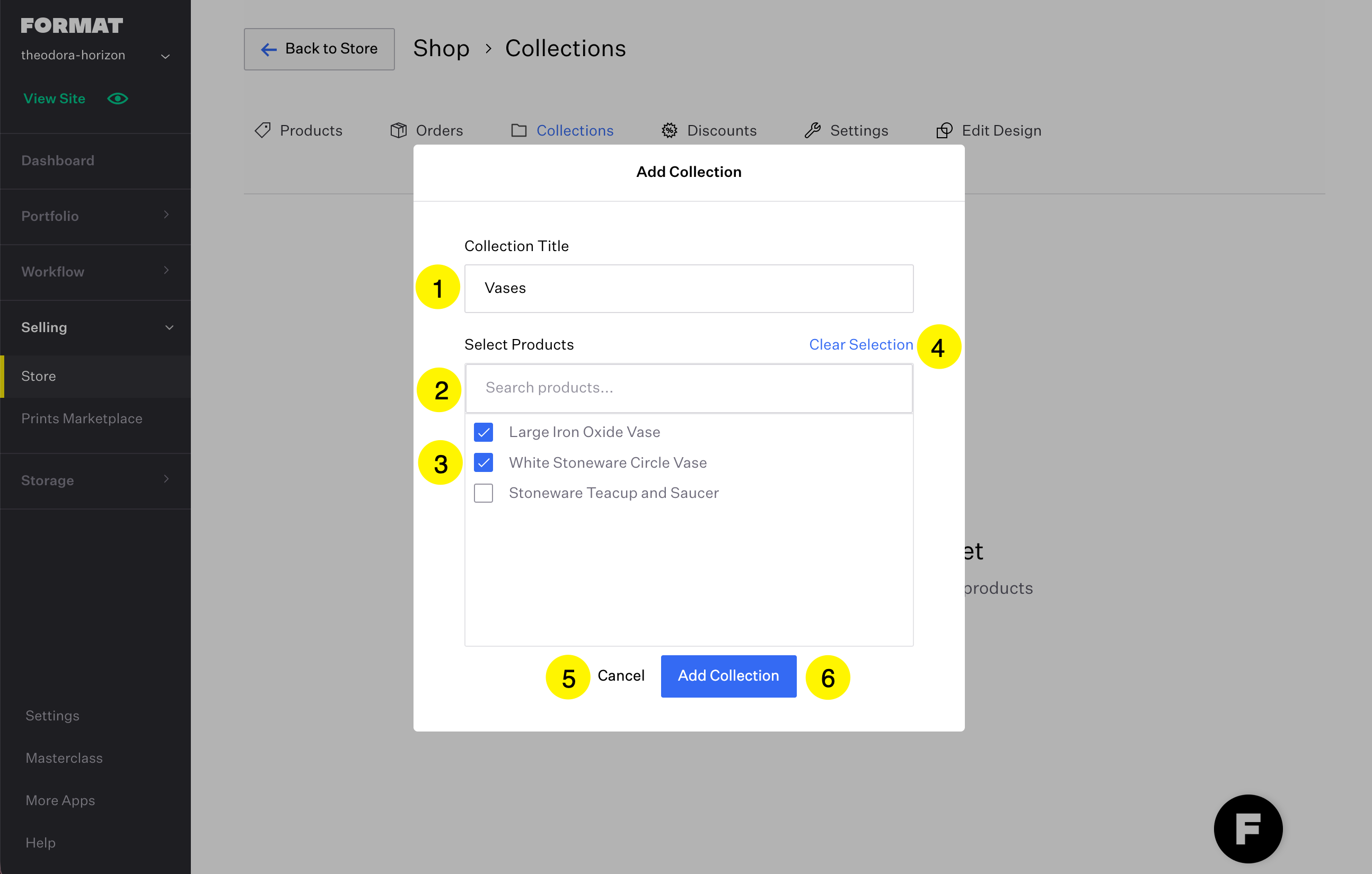 - Add Collection: Once you have selected the products you want to add to your Collection, click this to finalize the creation of the Collection