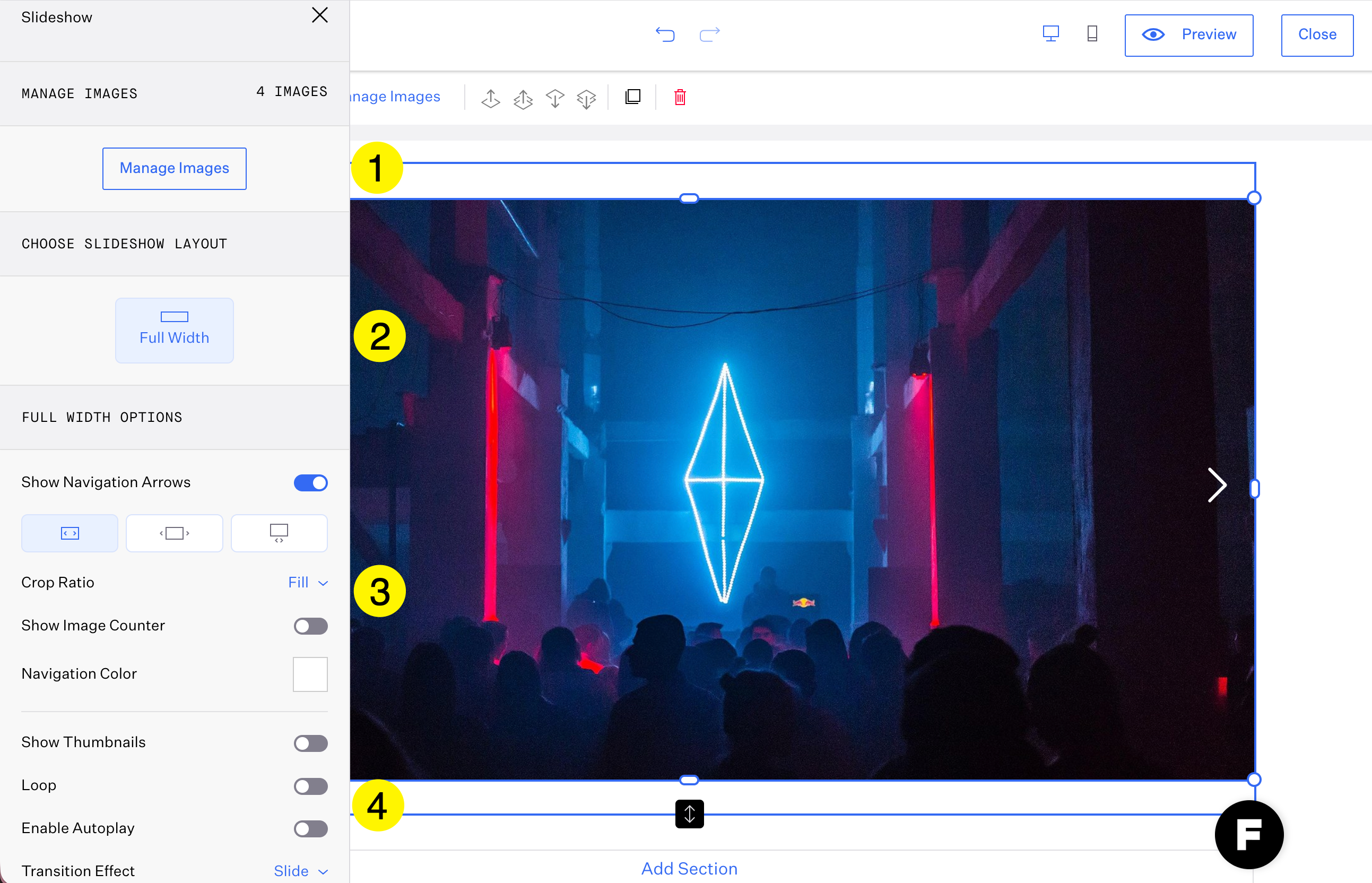 - Enable Autoplay: Allow the Slideshow to advance on its own, without visitor interaction